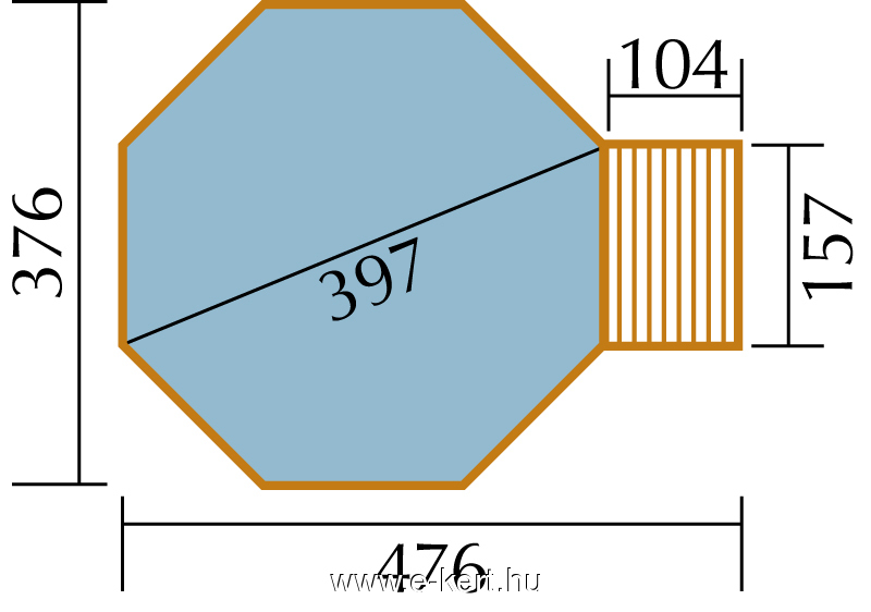 - Breite x Tiefe: 378 x 476 cm (einschließlich Maschinenraum) siehe Plan