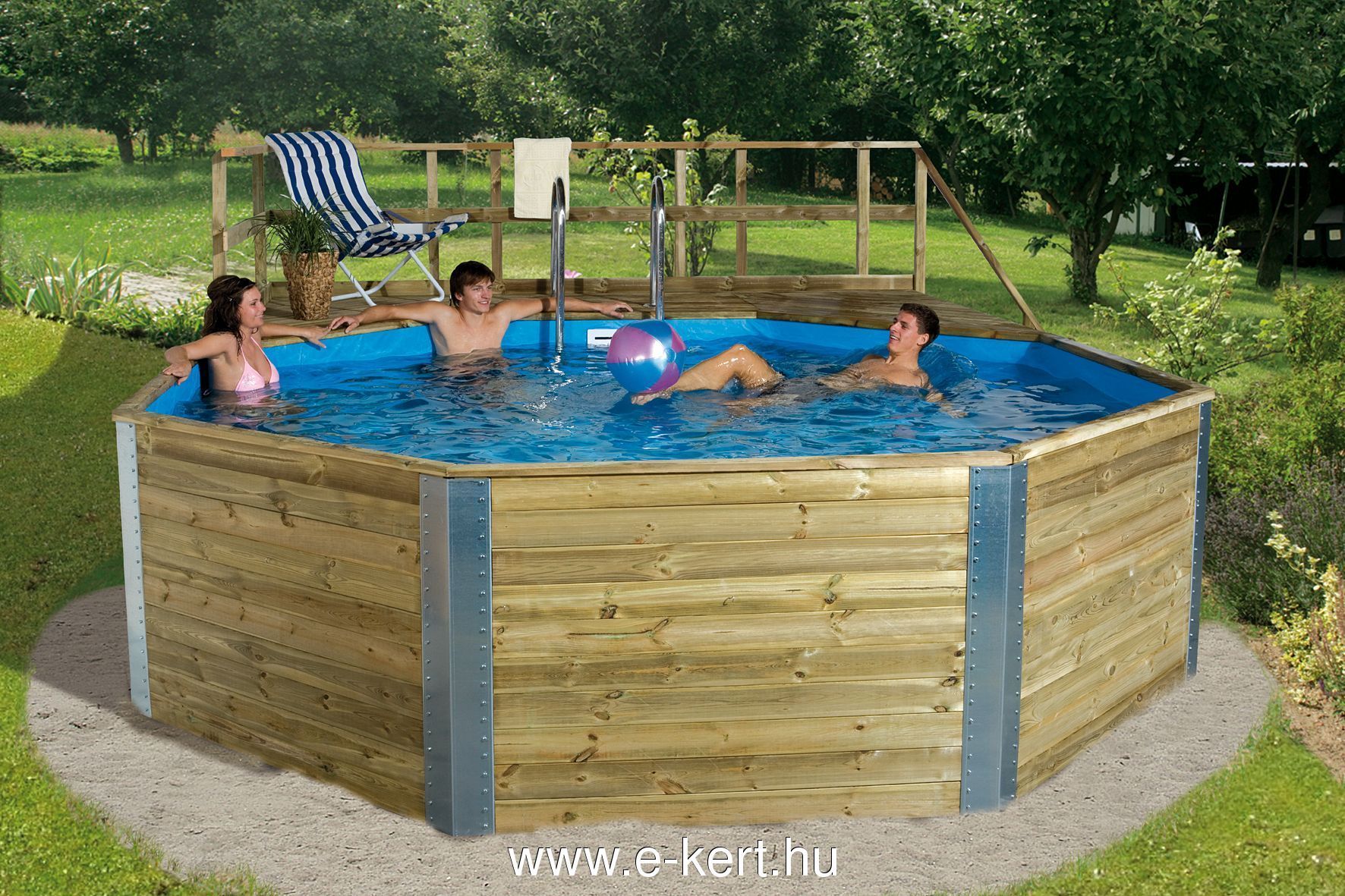 - Wir empfehlen unsere Gartenpools mit Skelettrahmen für diejenigen, die nicht alle 1-2 Jahre einen neuen Kunststoffpool kaufen möchten. Dank des gesättigten, soliden Balkenrahmens bieten wir eine 5-jährige Werksgarantie auf das Holz der Rahmenkonstruktion.