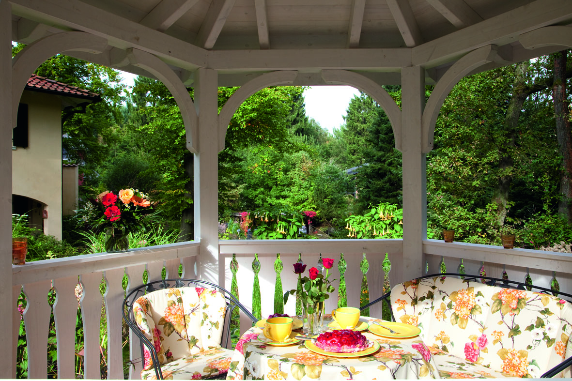 Weitere Informationen über die Bemalung und Beizung der Pavillonsäulen finden Sie hier.