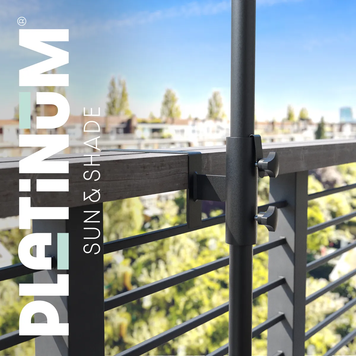 Sichere Sonnenschirmbefestigung für Balkongeländer Platinum verical railing 7791
