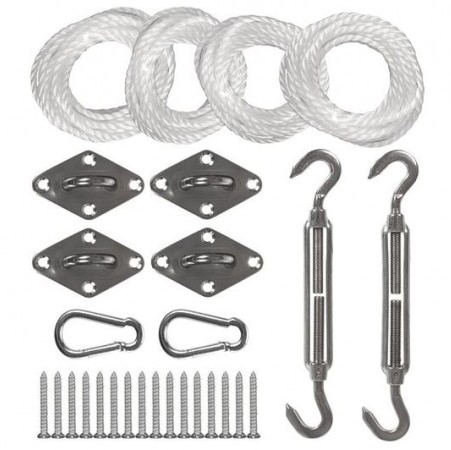 - Jeder kann ein Sonnensegel in wenigen Minuten installieren, je nach Standort. Die für die Installation erforderliche Takelage erhalten Sie in jedem Baumarkt