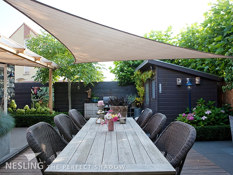 - Effiziente und kostengünstige Beschattung mit einem Sonnensegel, egal ob es sich um einen Gartenpavillon oder eine Terrassenbeschattung handelt. Sonnensegel können in jedem Winkel und in jeder Ebene aufgespannt werden.