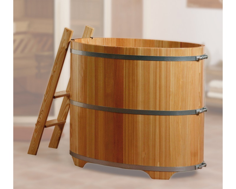 - Auch optisch hat er Vorteile: Die funktionale ovale Form, das hochwertige natürliche Lärchenmaterial und die verzinkten, nachlaufenden Stahlringe lenken die Aufmerksamkeit auf den Wellnessbereich.
