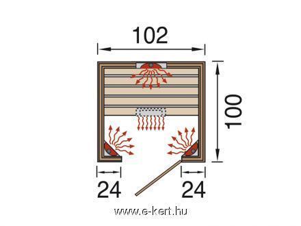 Außenmaße der Infrarotkabine: 102 cm x 100 cm (131 cm x 102 cm auch in 2-Personen-Größe erhältlich)