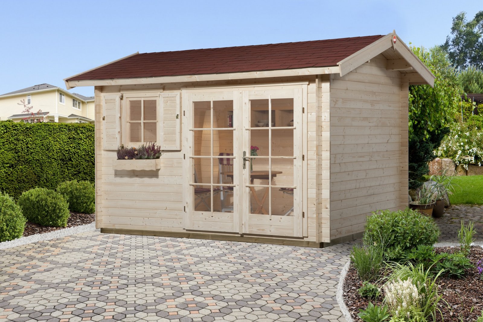 - Holzhaus mit einer Firsthöhe von 268 cm