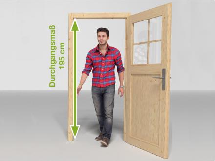 - Dachüberstand 50 cm über der Eingangswand. Traufhöhe an der Vorderseite 249 cm