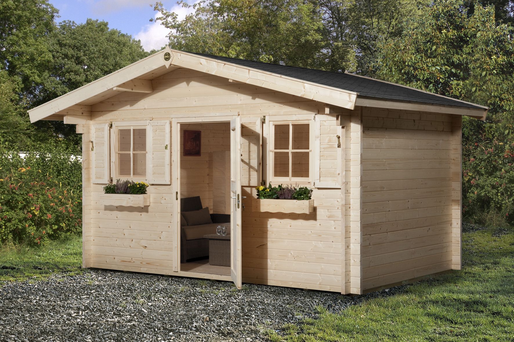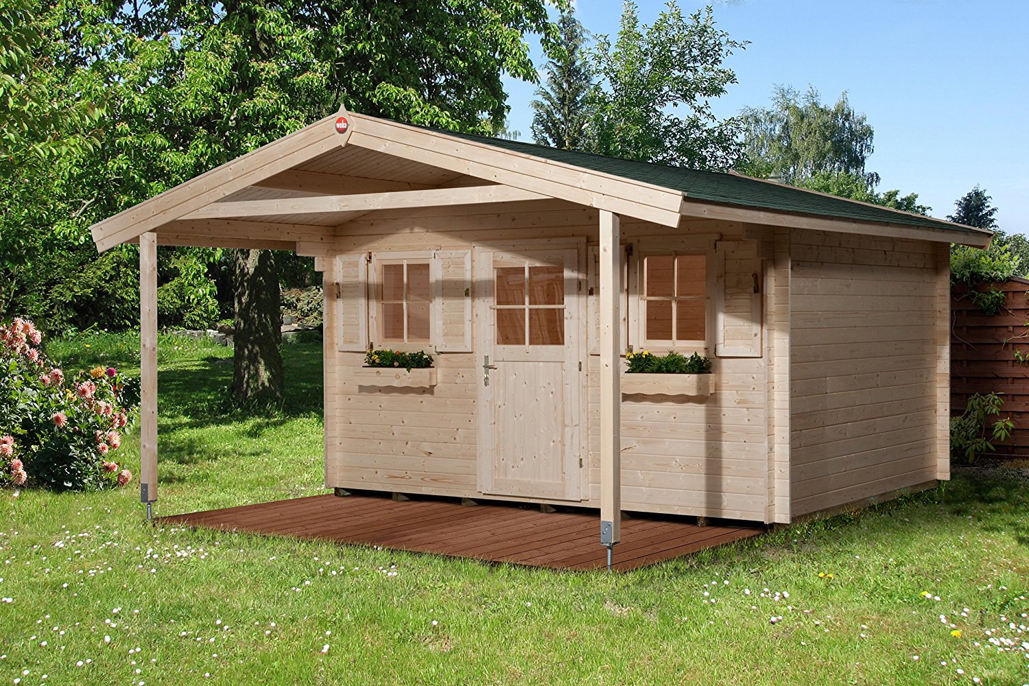 Mit 19 mm Massivholzdach und Massivholzboden