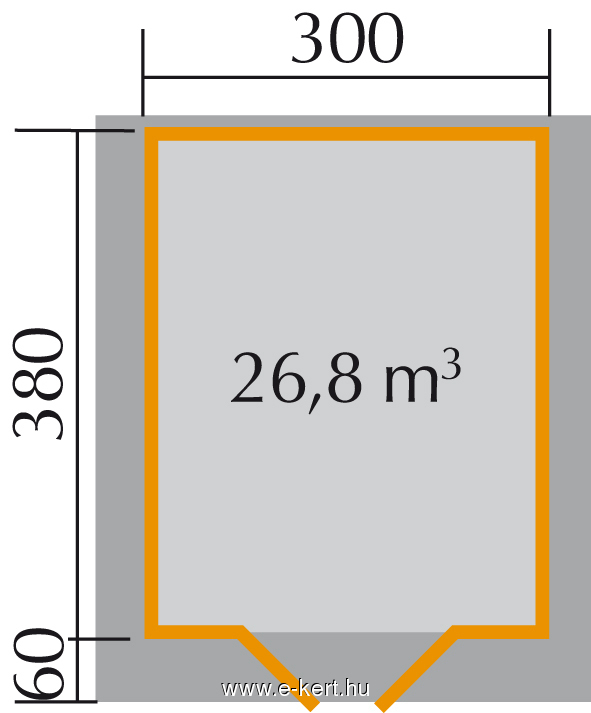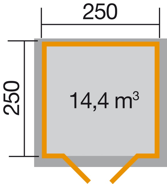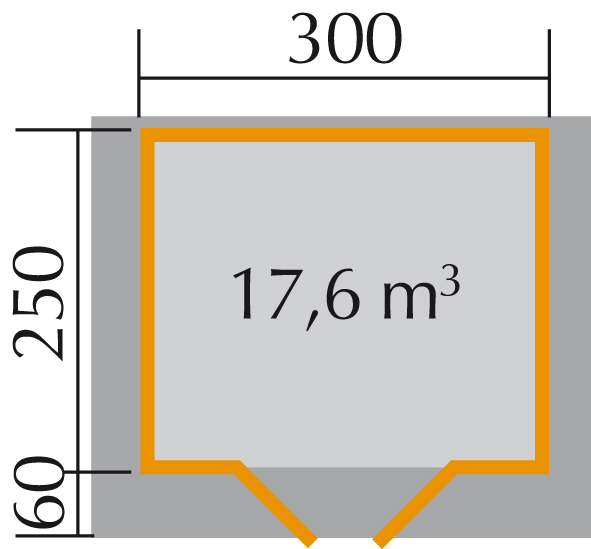 Sie können die gewünschte Fundamentgröße des fertigen Holzhauses auswählen, indem Sie die Auswahltaste neben dem Foto oben verwenden: 300 x 300 cm oder 300 x 200 cm oder 300 x 250 cm oder 300 x 380 cm oder 250 x 200 cm oder 250 x 250 cm und 250 x 300 cm Fundamentgrößen. Die ersten vier Größen haben eine 60 cm lange Haube, die letzten 3 Größen haben eine 20 cm lange Haube