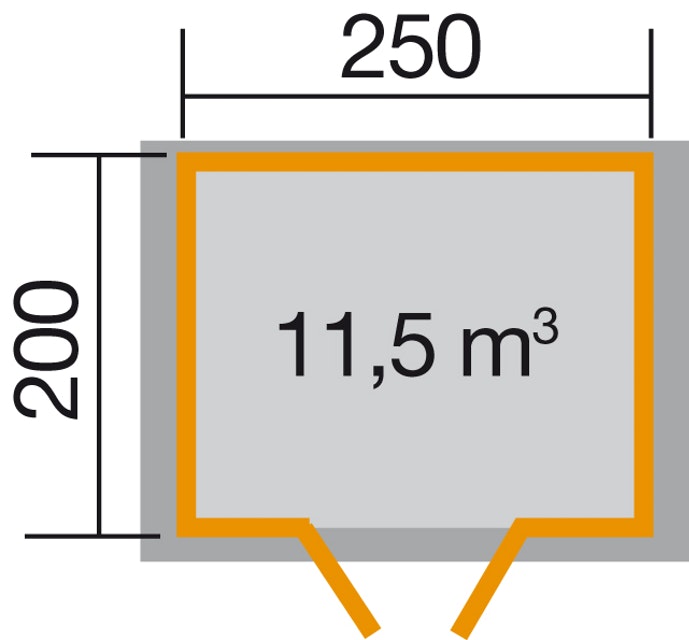 - Höhe der Seitenwände des Gerätehauses 210 cm; Höhe des Rückens 262 cm