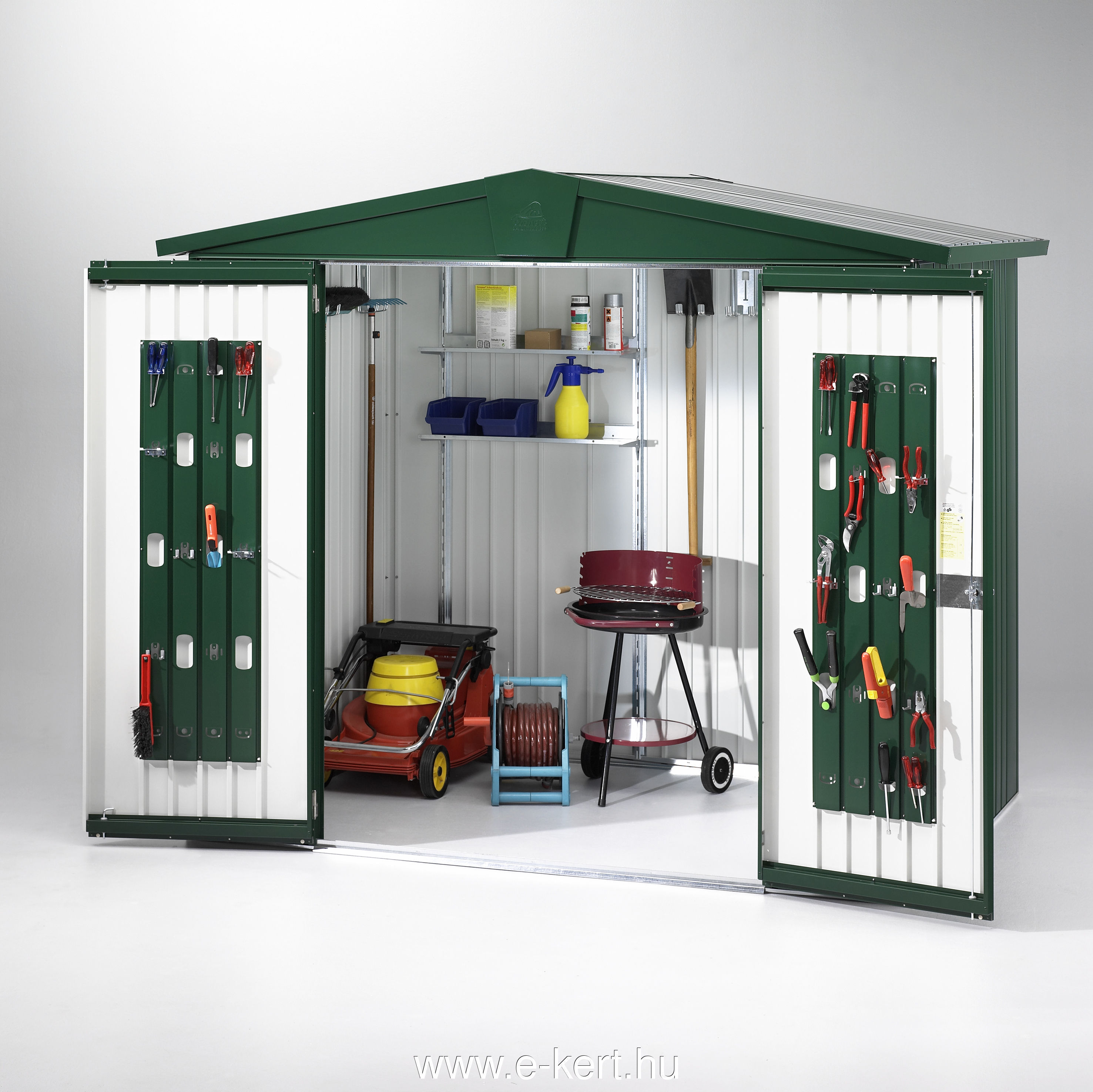 Optionales Zubehör für Europa Metall Werkzeugaufbewahrungsgehäuse: https://de.e-kert.hu/termekkategoria/fahaz-szerszamtarolo-szerszamos-haz-kerti-tarolo-kerekpar-tarolo-fatarolo-akcios-fahaz-olcso-fahazepites/biohort/