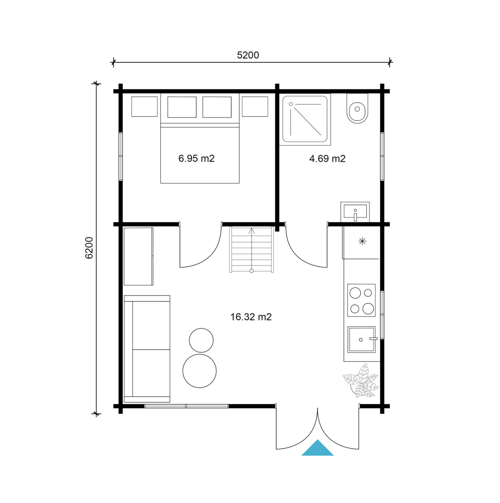 Wochenend-Holzhaus 500 x 600 cm; Nettowohnfläche 39,8 m2